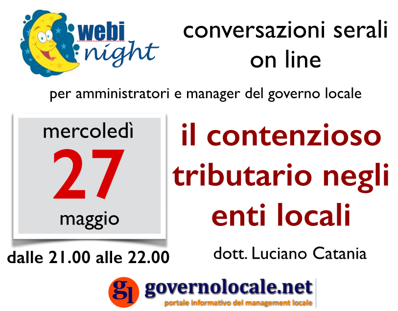 Continua il ciclo dei “webinight” di governolocale.net, con un seminario serale sul tema “il contenzioso ributario negli enti locali” che sarà illustrato dal dott. Luciano Catania, segretario comunale ed esperto in materia di fiscalità locale.