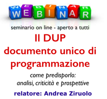 Oggi si è tenuto il seminario on line sul tema del DUP. il documento unico di programmazione, tenuto dal prof. Andrea Ziruolo.