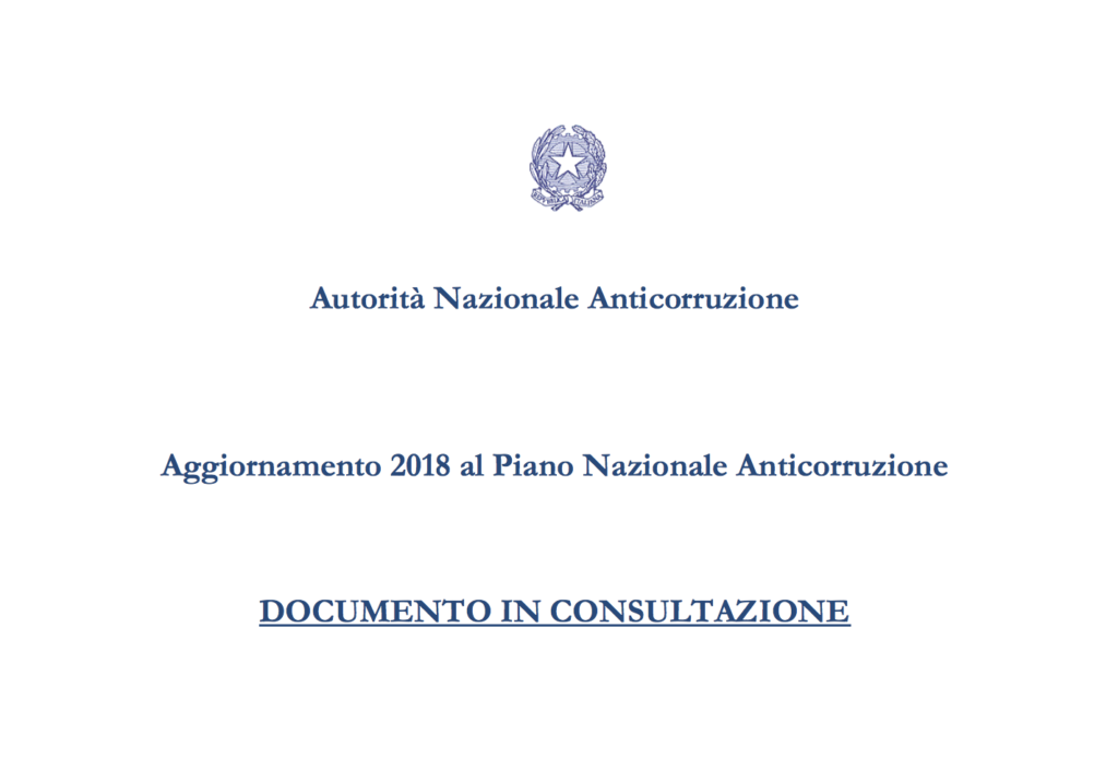 L’ANAC ha pubblicato sul proprio sito l’aggiornamento al PNA 2018, in fase di consultazione fino al 15 novembre prossimo.